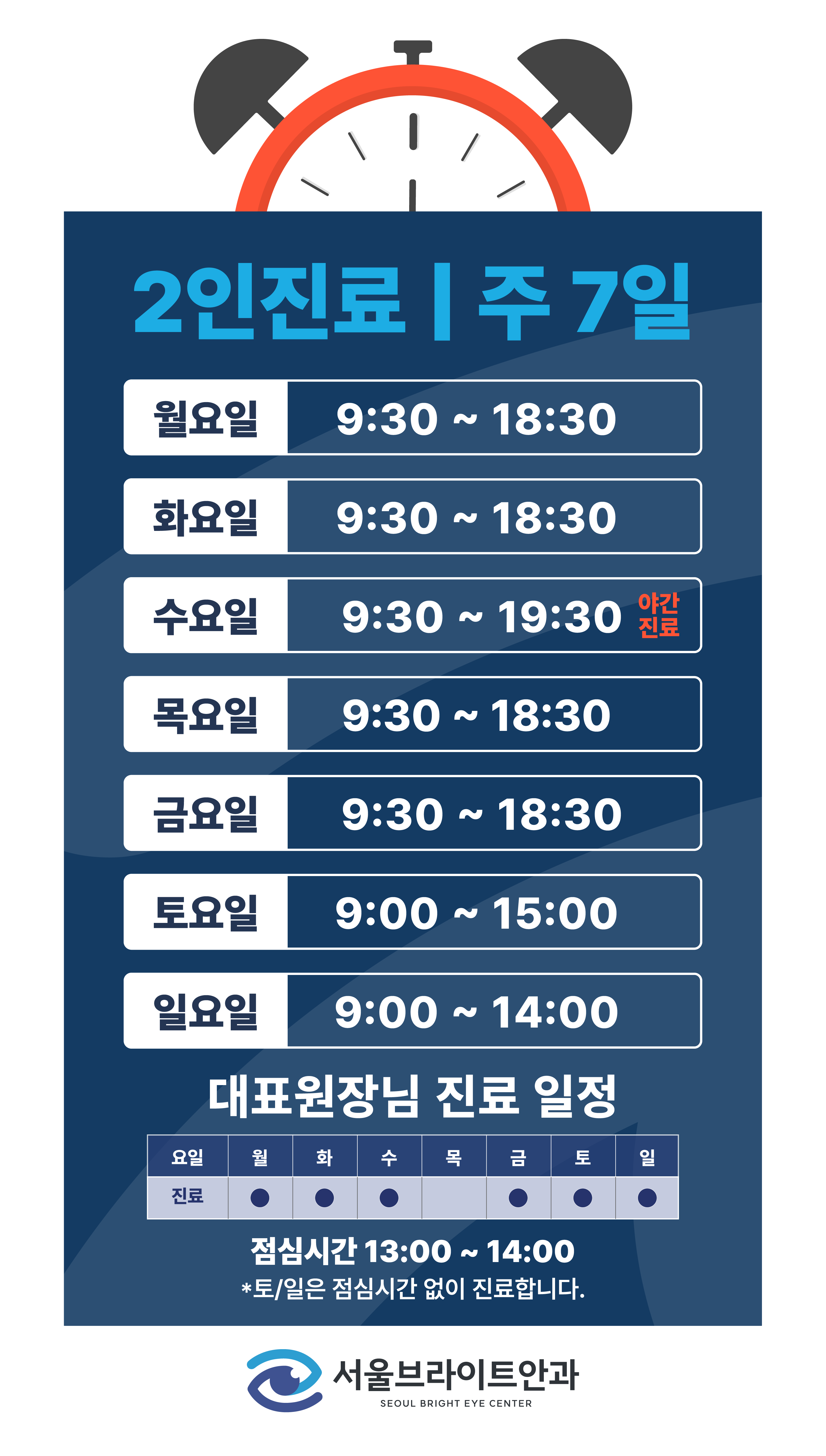 ※ 토 · 일요일 점심시간 없이 진료