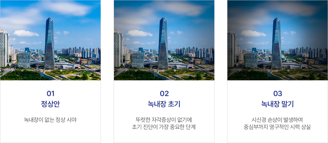 따라서 녹내장 말기가 되어서야 시력저하 및