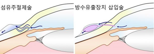 눈 속에 다른 방수유출로를 만들어 안압을 조절합니다.