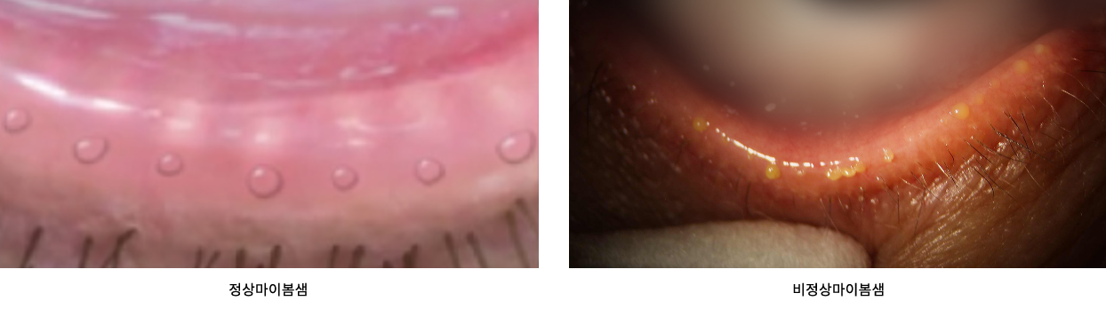 안구건조증의 주요 원인 중 하나로 눈꺼풀 가장자리에 있는 마이봄샘에서 정상적으로 맑은 기름이 분비되어 눈물의 증발을 막아주는데,