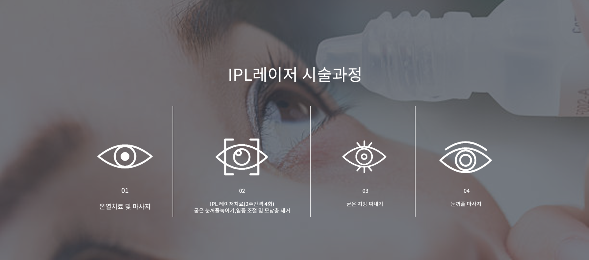 눈꺼풀의 염증을 완화시키고, 굳어있는 마이봄샘을 녹여 안구건조증의 치료에 도움을 줍니다.
